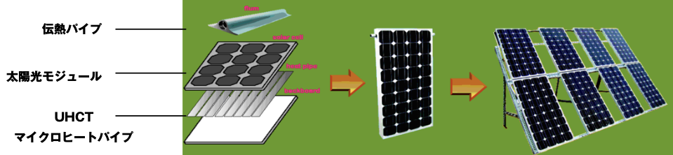 UHCT太陽光パネルは平型のヒートパイプを装着することにより、