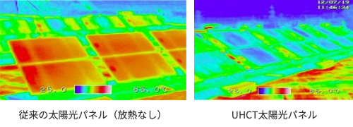 サーモグラフィーカメラによるパネル表面温度比較(当社比)